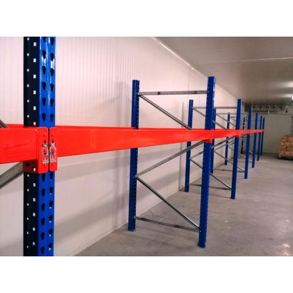 Upright frames, varied in size and design depending on load requirements and styles. One upright frame consists of two upright columns and several horizontal and diagonal braces. Holes or slots are punched up and down the column at standard intervals during manufacturing. The load beams can be mounted into the columns and stabilize the upright frames.